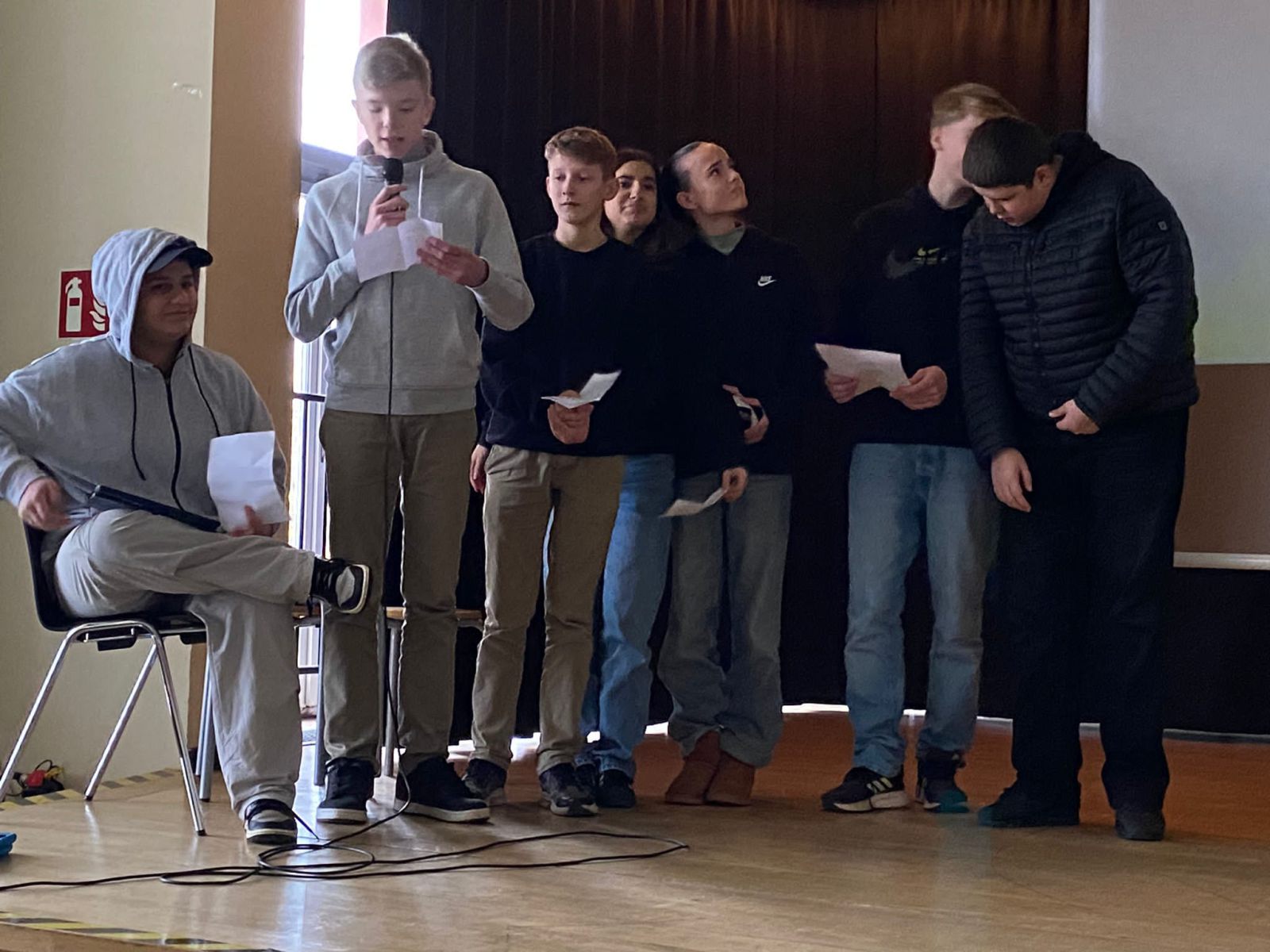 Am dritten Donnerstag im November war es nun wieder soweit und alle sechs Klassen des achten Jahrgangs versammelten sich gespannt auf die angekündigten Darbietungen, in der vollbestuhlten Aula des kleinen Hauses.