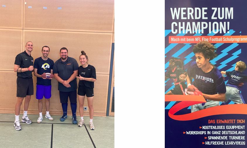 Im September hatte ich die Möglichkeit, gemeinsam mit meinen Kolleginnen und Kollegen Nina Brockelmayer und Sascha Rödiger an einem zweitägigen NFL Flag Football Workshop teilzunehmen. Flag Football ist die kontaktlose Variante des American Footballs und eignet sich hervorragend für den Schulsport.