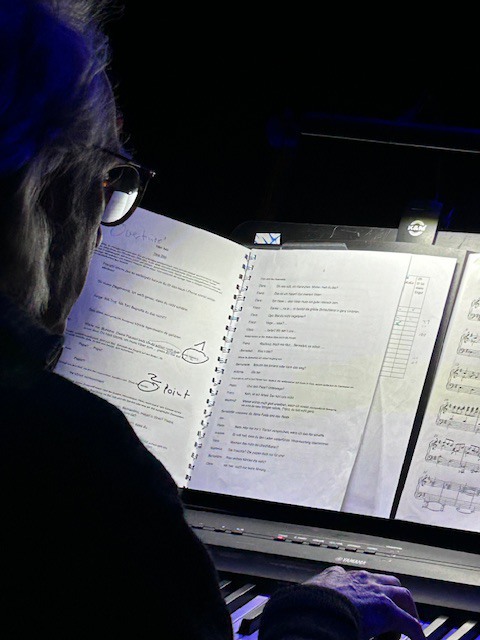 Um 7:20 Uhr bestiegen wir den Zug nach Sylt. Parallel fuhr ein LKW mit Requisiten, Technik und gefühlt dem gesamten Fundus des Musiktheater Konrad in Richtung Norden. Aus allen Himmelsrichtungen reisten Regie, Musikalischer Leiter, Intendanz, Inspizienz, Musiker, Techniker, Maskenbildnerin und Kostümbildnerin an. Im Strandhotel Sylt angekommen, bezog das Ensemble seine Zimmer, während im Alten Rathaussaal des Kurhauses stundenlang aufgebaut wurde.