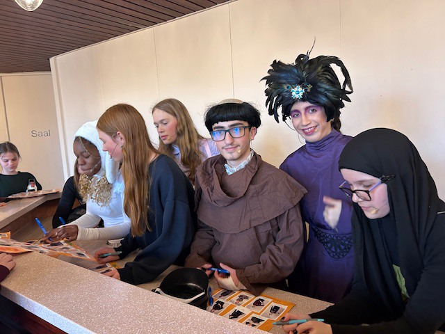 Doch dann geschah das Wunder der Musical-AG: Tristan und Ella aus  der preisgekrönten Inszenierung „Kommissar Shakespeare“ (2023) sprangen kurzfristig als Vater /Sultan und U1 ein – ein echtes Wunder, möglich nur durch besondere Gemeinschaft, Zusammenhalt, enorme Kraftanstrengung und echte Liebe zu dem, was man tut. Clarisse (legendär als Hase!), Gesa und Pauli übernahmen zusätzliche Rollen. Alle supergut, alle unkompliziert und hochprofessionell UND zuverlassig.