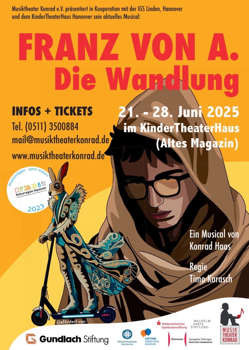 vieler Beteiligter braucht es verlässliche Förderstrukturen. In besonderer Weise ist hier die Gundlach Stiftung zu nennen, die das Musiktheater Konrad seit seiner Gründung langfristig grundfinanziert und damit ein Fundament schafft, auf dem Kooperationen wie die mit der IGS Linden erst tragfähig werden. Ergänzend kamen weitere Förderer hinzu.