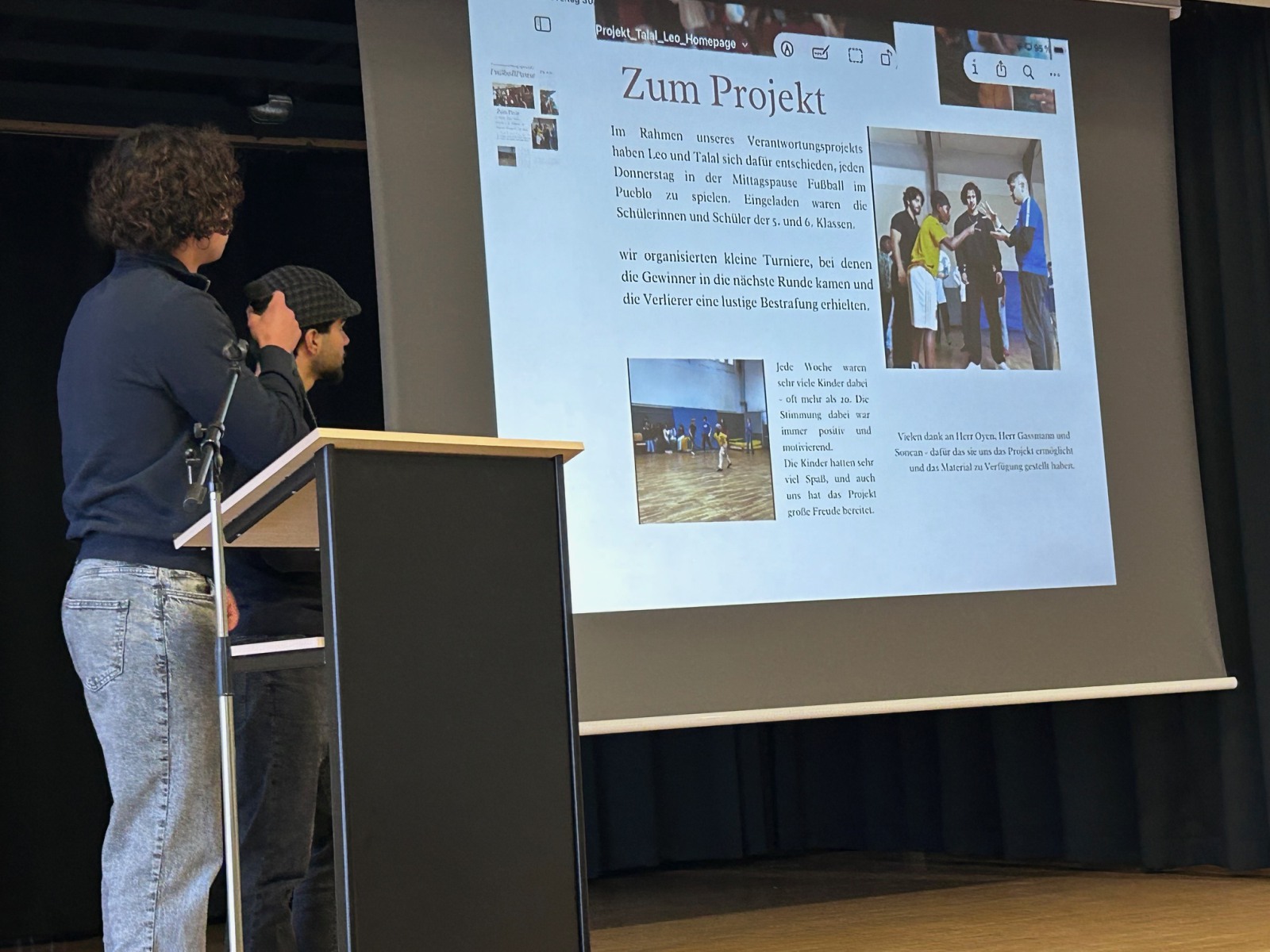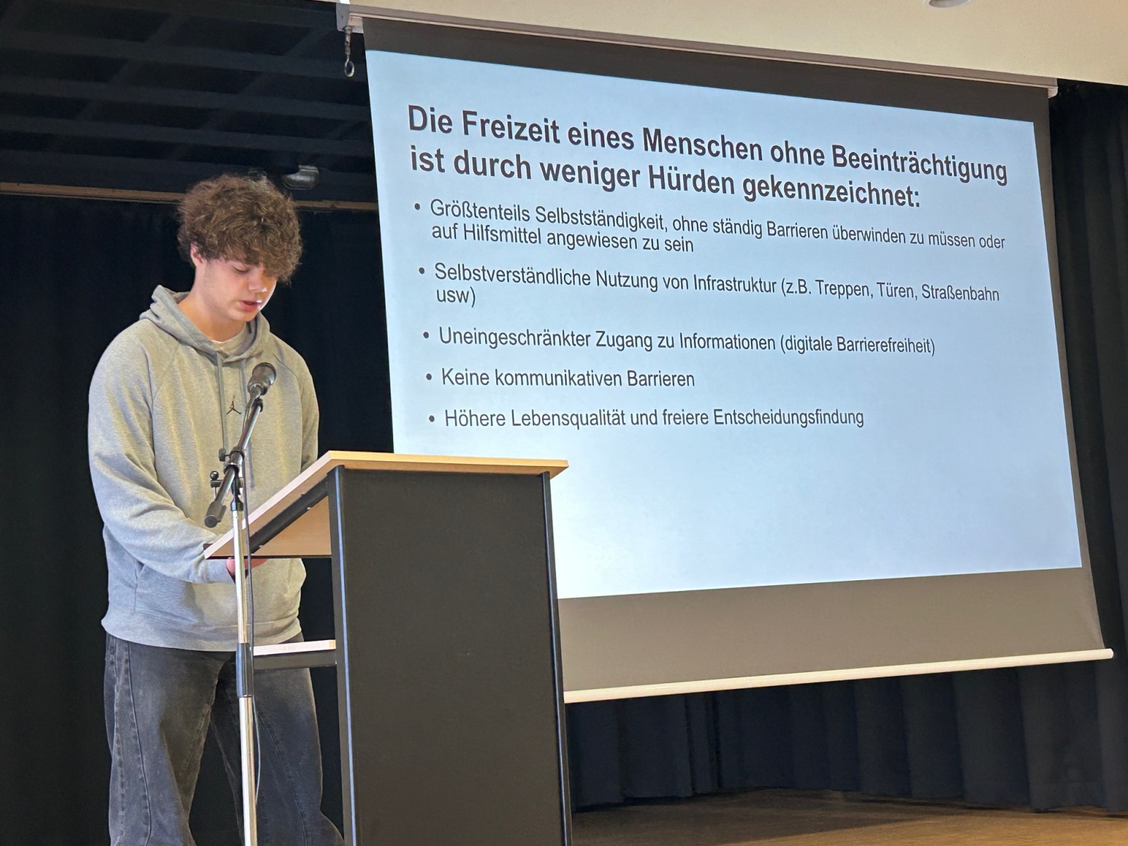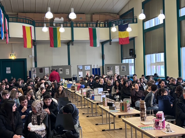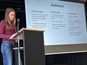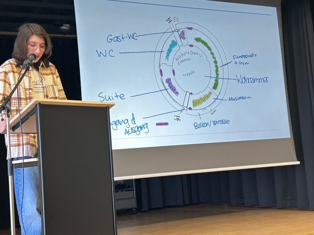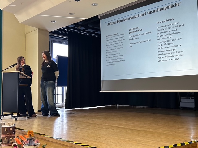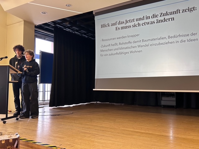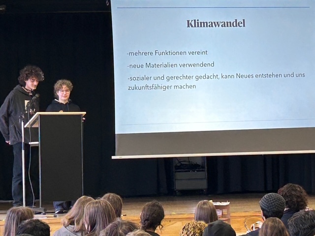 Sechs ausgewählte Jugendliche präsentierten ihre Projekte vor der gesamten Jahrgangsgemeinschaft. Im Mittelpunkt standen dabei drei Leitfragen: Was bedeutet Gemeinwohlorientierung? Warum ist mein Gebäude nachhaltig? Welche Idee steckt hinter dem äußeren Erscheinungsbild? Die Vorträge überzeugten durch Klarheit, Haltung und fachliche Tiefe.