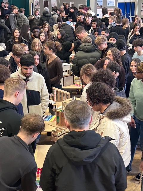 Der Höhepunkt des Projekts war die Präsentation während des Jahrgangsforums. In einem Gallery Walk wurden die Modelle ausgestellt und konnten aus nächster Nähe betrachtet werden. Mit Punktekleben wurde individuell abgestimmt: Welches Modell hat mich am meisten angesprochen? Die Rückmeldungen machten deutlich, wie vielfältig Wahrnehmung und Bewertung sein können.