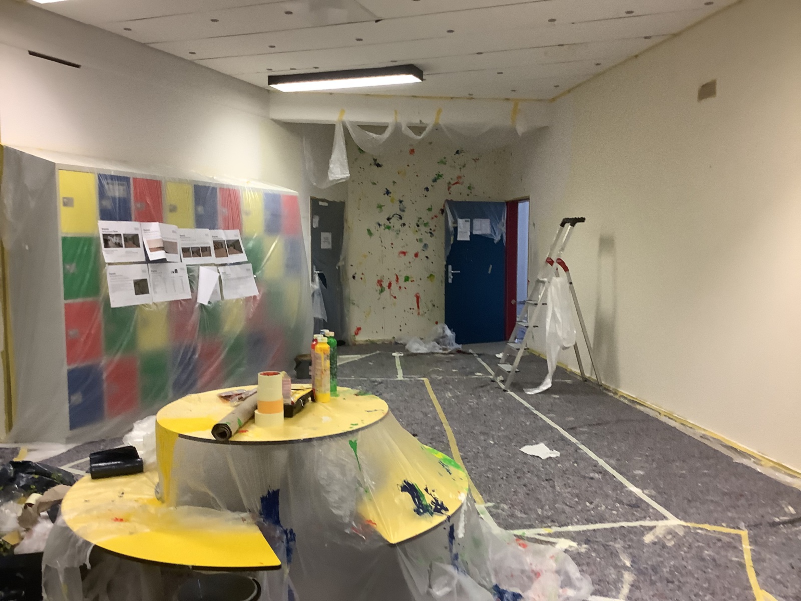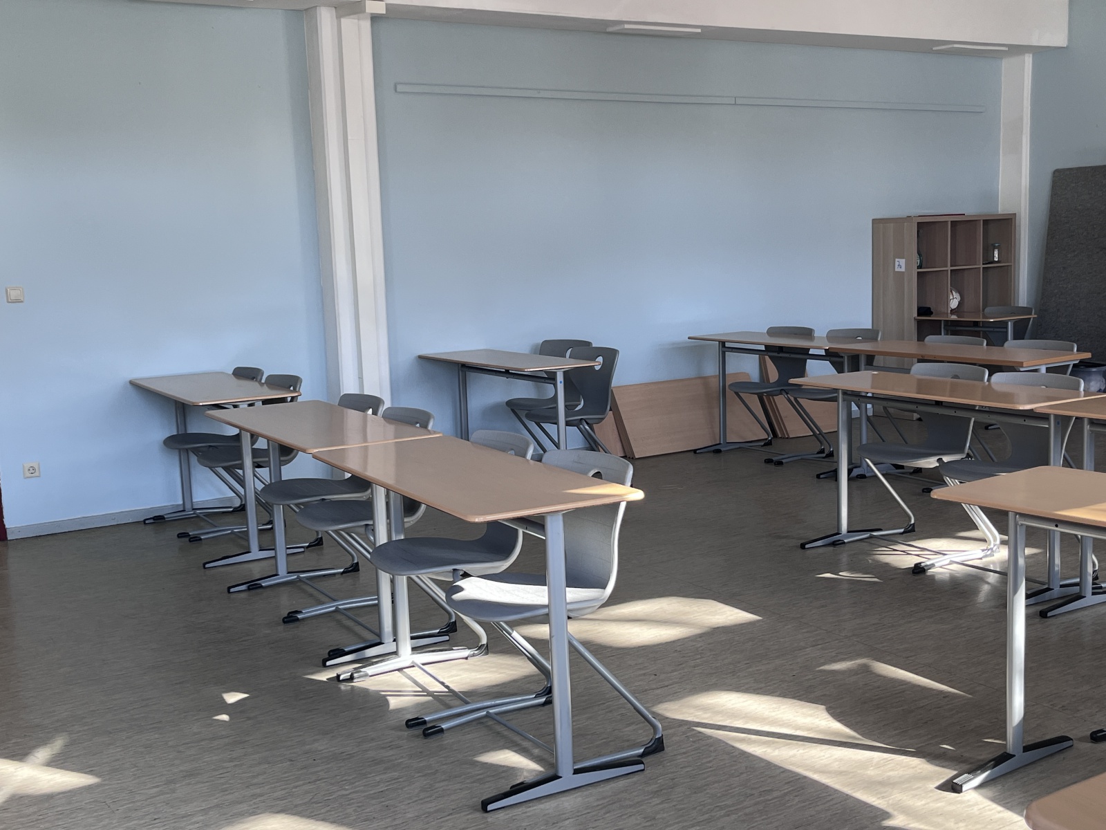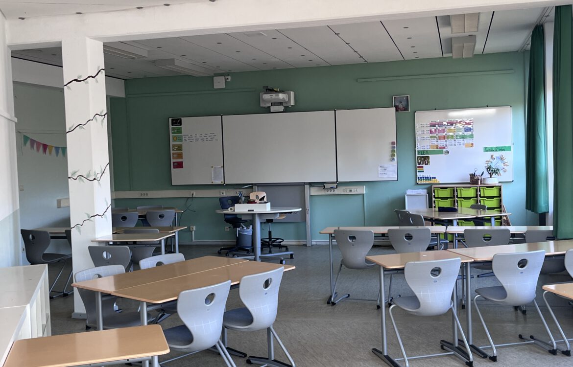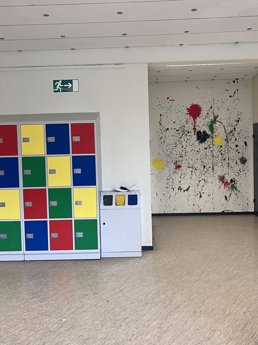 Nach monatelanger Vorbereitung in den Flex- und Stammstunden wurden die von den Schülerinnen und Schülern entwickelten und ausgewählten Entwürfe für eine schönere Lernumgebung umgesetzt. Alle Schülerinnen und Schüler arbeiteten mit ihren Lehrkräften in den verschiedenen Räumen des Jahrgangs – vom Ausräumen über das Abkleben bis zum Streichen. Danach musste der Jahrgang wieder aufgeräumt und wieder eingerichtet werden. In der Projektwoche hat der ganze 7. Jahrgang viel gearbeitet.