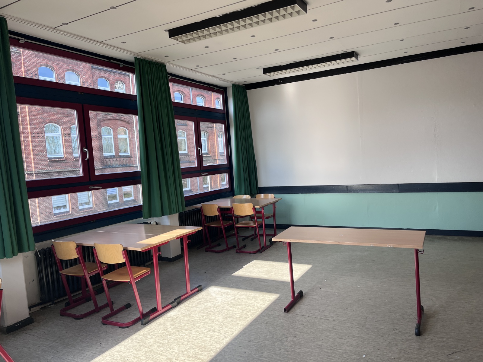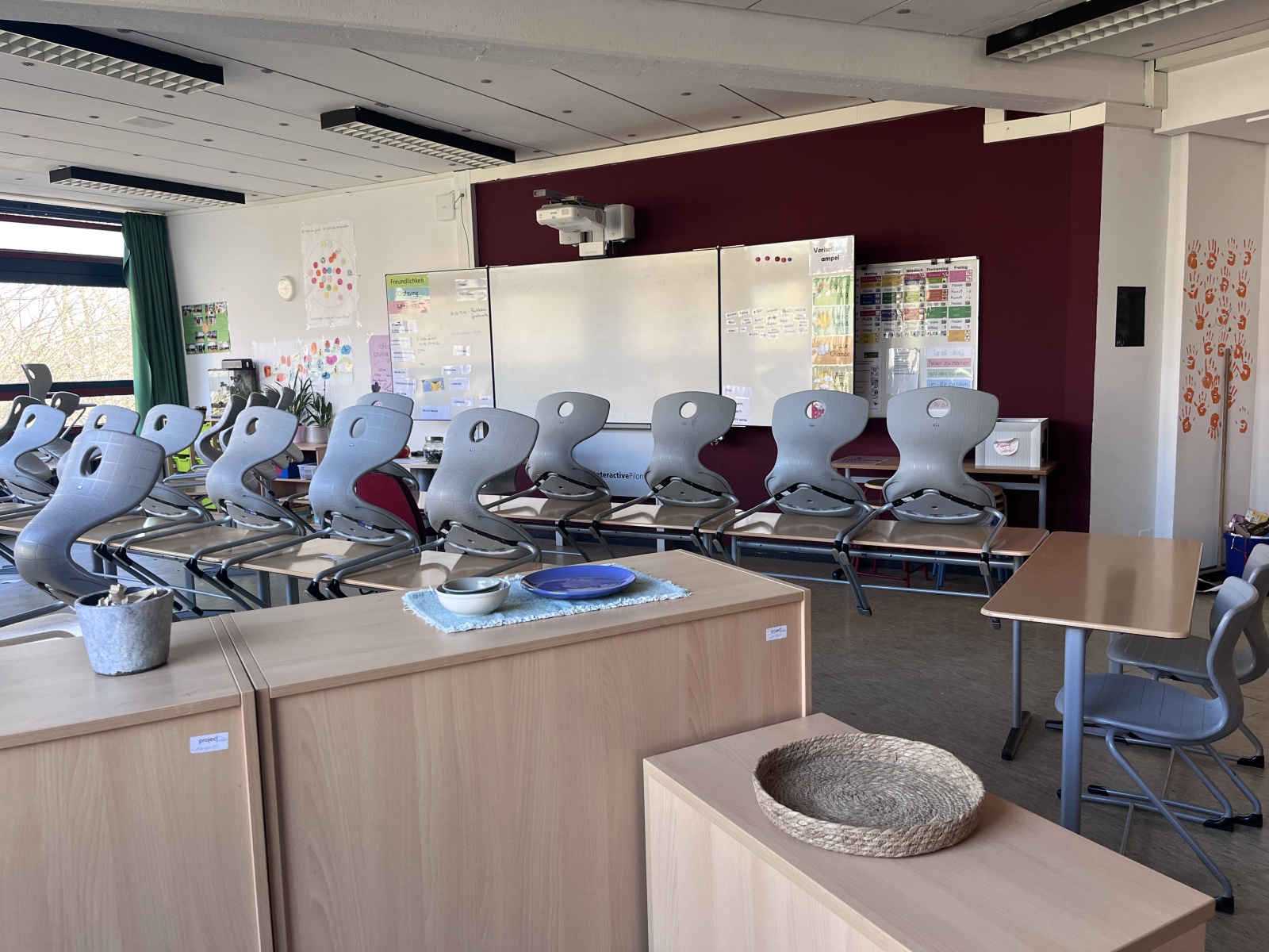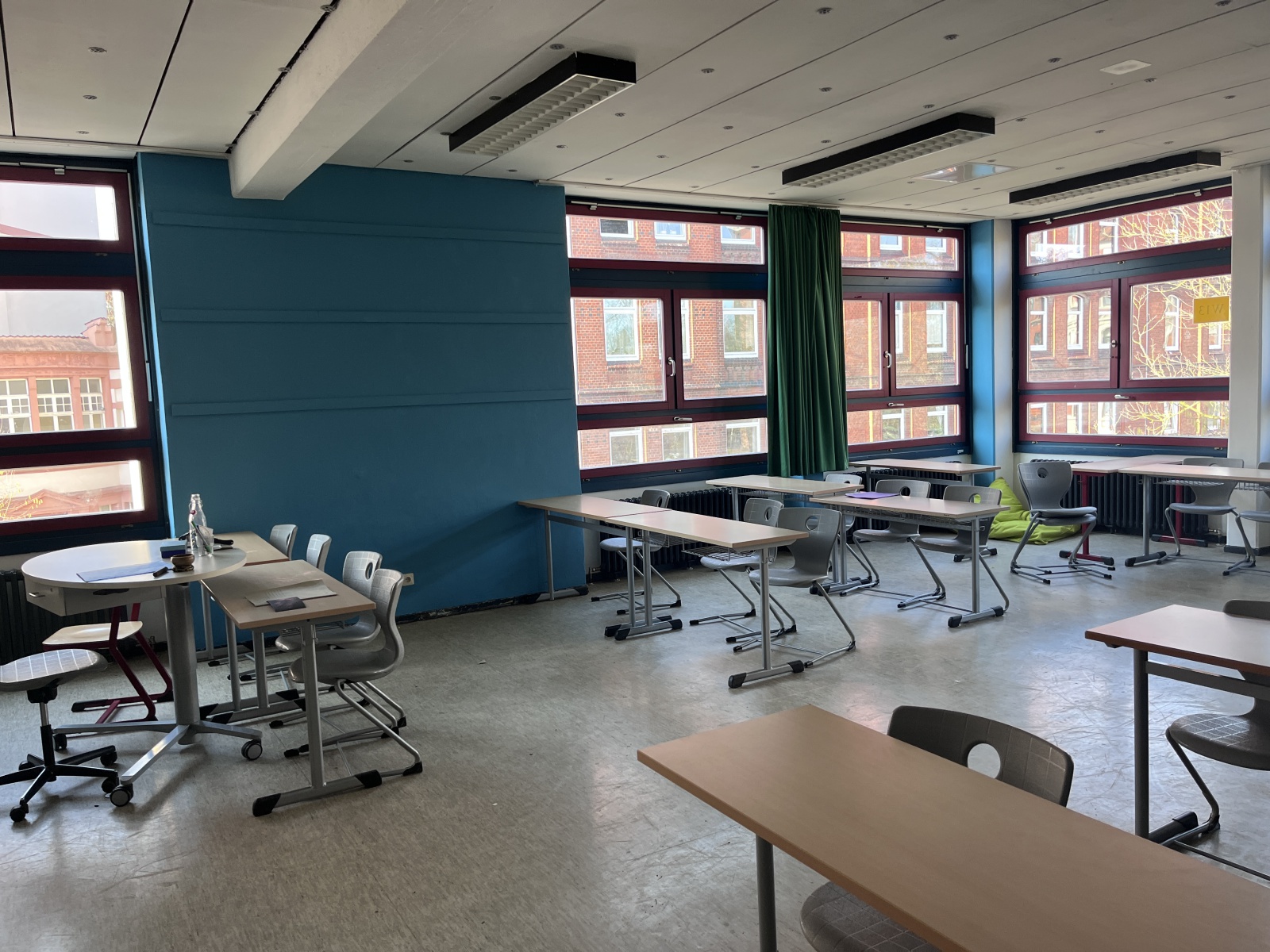 Nach monatelanger Vorbereitung in den Flex- und Stammstunden wurden die von den Schülerinnen und Schülern entwickelten und ausgewählten Entwürfe für eine schönere Lernumgebung umgesetzt. Alle Schülerinnen und Schüler arbeiteten mit ihren Lehrkräften in den verschiedenen Räumen des Jahrgangs – vom Ausräumen über das Abkleben bis zum Streichen. Danach musste der Jahrgang wieder aufgeräumt und wieder eingerichtet werden. In der Projektwoche hat der ganze 7. Jahrgang viel gearbeitet.