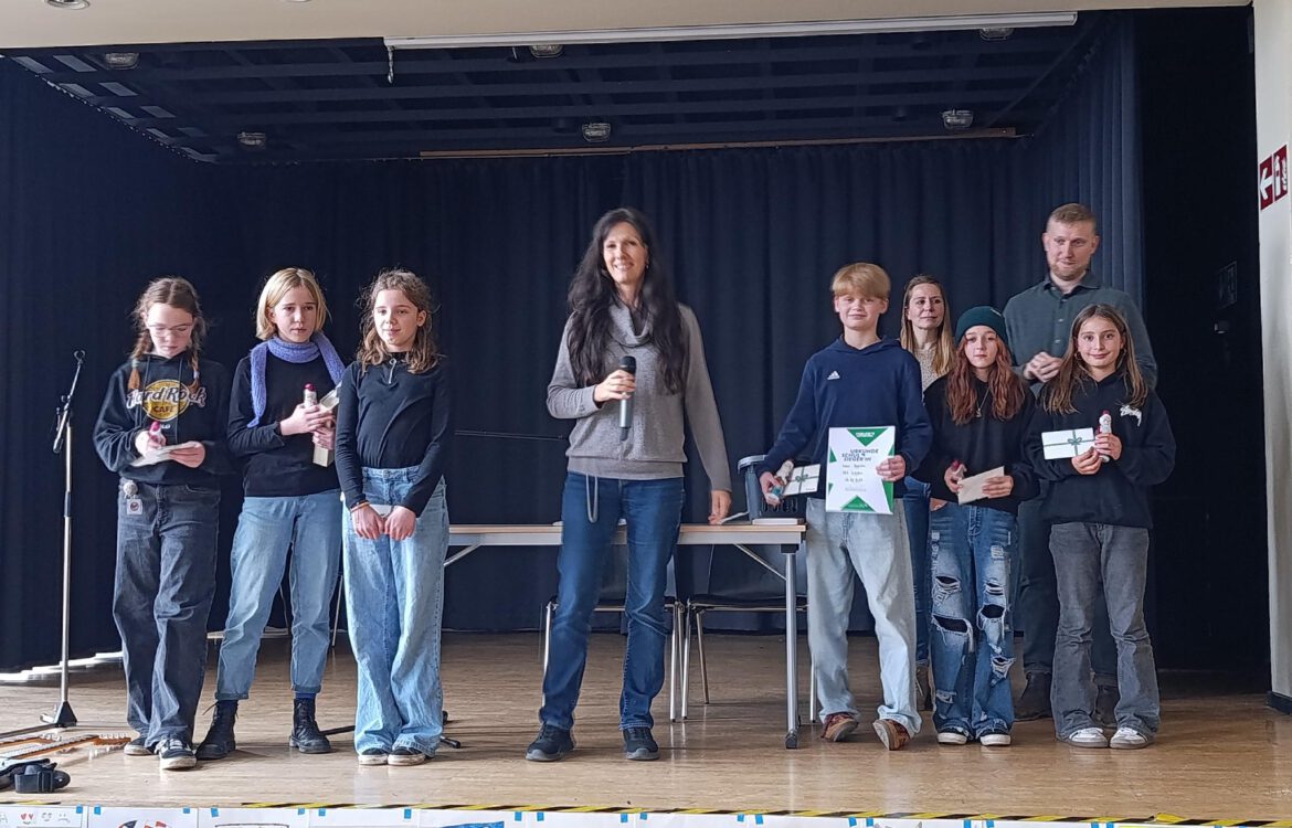 Am 3.12.25 wurde es spannend in der Aula der IGS Linden. Die sechs Klassensieger*innen des Vorlesewettbewerbs traten in der Aula vor dem gesamten